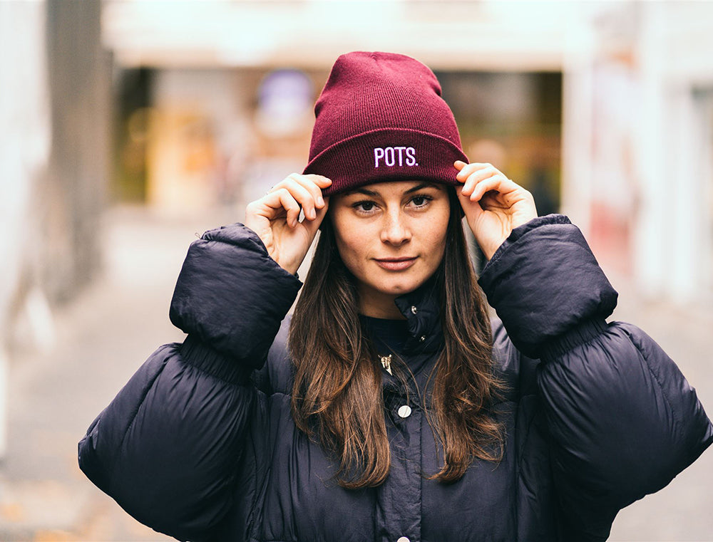De muts is bordeaux met witte borduring. Deze beanie is in 1 maat beschikbaar. Omdat de stof stretcht, past de muts voor (bijna) iedereen.