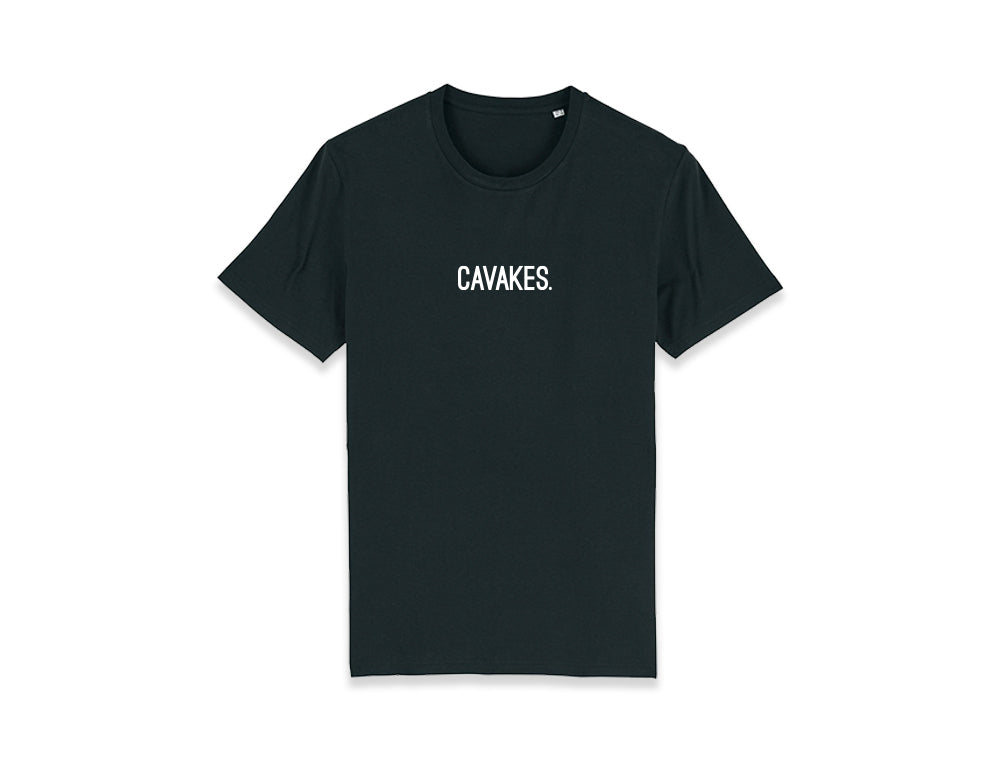Zwarte T-shirt met opschrift CAVAKES. voor volwassenen. Als cadeau of gewoon voor jezelf. Recht uit Antwerpen. Met trots voor het dialect.