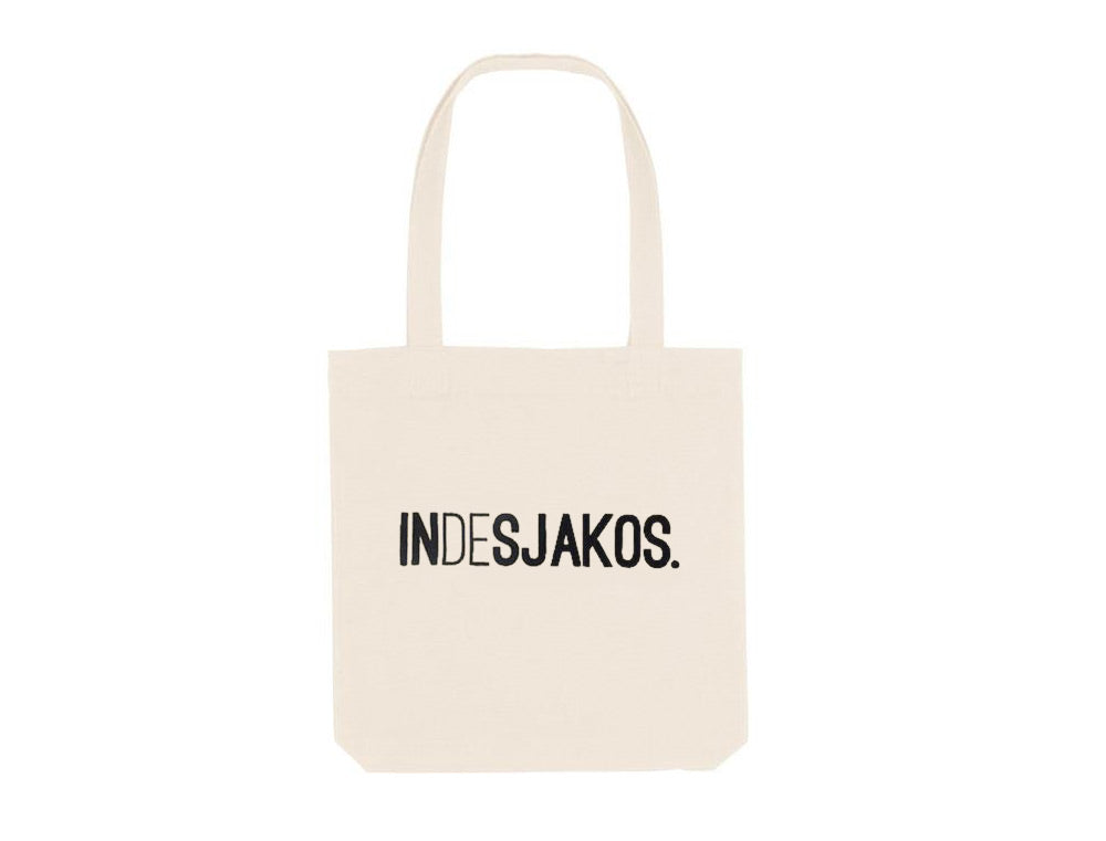 Stevige linnen zak met opschrift INDESJAKOS. aan de ene zijde en KLEIR. aan de andere kant.